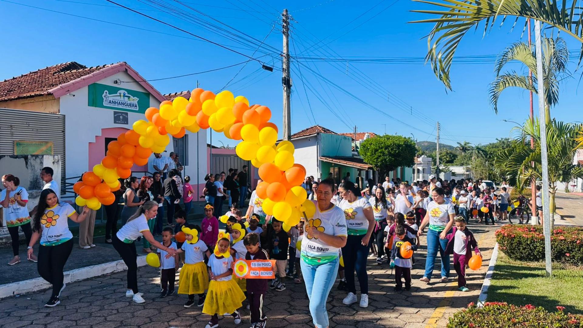 Em alusão ao 18 de Maio – Dia Nacional de Combate ao Abuso e à Exploração Sexual de Crianças e Adolescentes, a Rede Municipal e Estadual de Ensino de Anhanguera, em parceria com a Assistência Social, Conselho Tutelar e o CMDCA, realizaram uma caminhada pelas ruas da cidade para conscientizar a população sobre a importância da proteção à infância e à juventude.