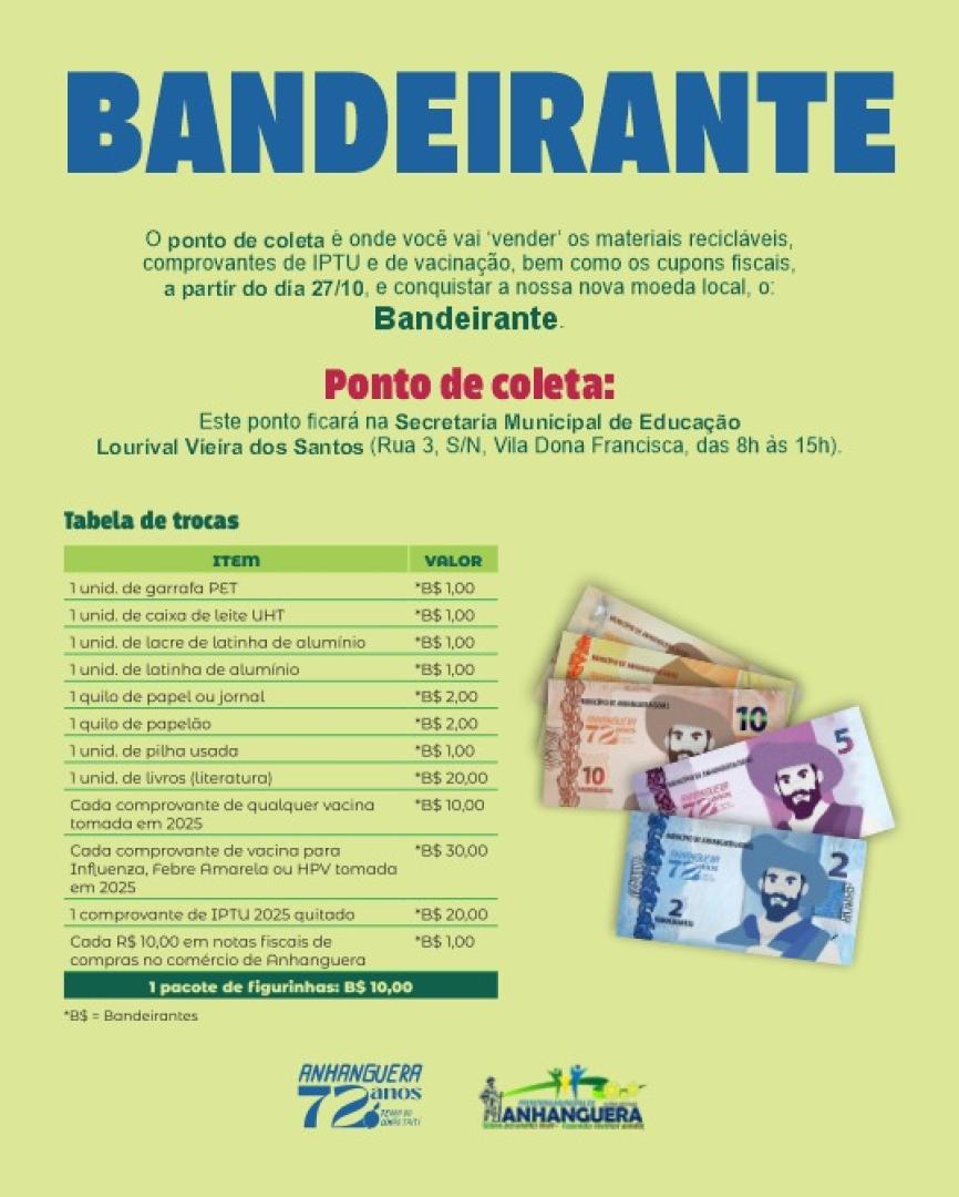 E no dia 27/10, próxima segunda-feira, você já poderá "vender" seus materiais recicláveis e comprovantes e adquirir o Bandeirantes. Também poderá comprar figurinhas. Que legal!!!!
