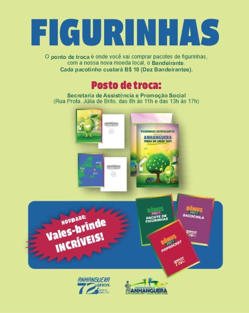 Em 2021, nossa cidade ganhou seu primeiro álbum de figurinhas, que contou com muito carinho a história e a cultura anhanguerina. Foi uma verdadeira viagem no tempo, que uniu famílias, escolas e toda a comunidade.